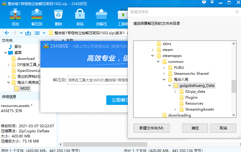 2.解压文件 找到目标文件夹 安装到guigubahuang_Data这个文件夹里就可以了